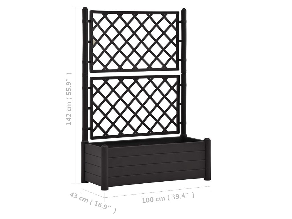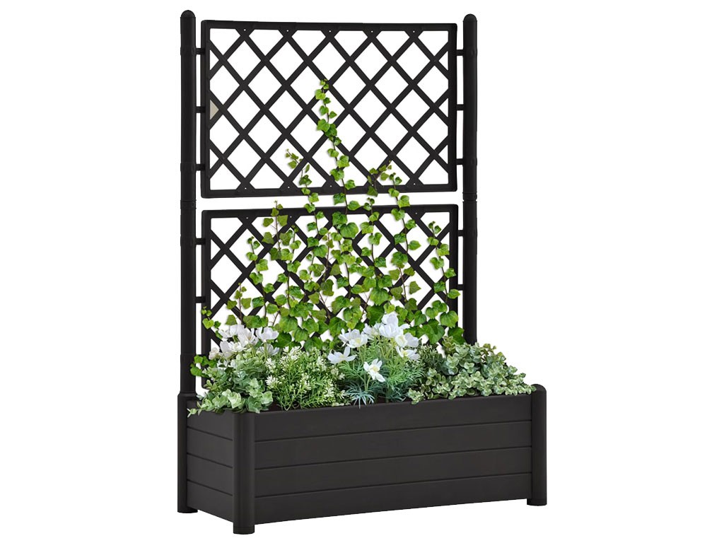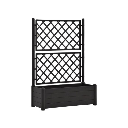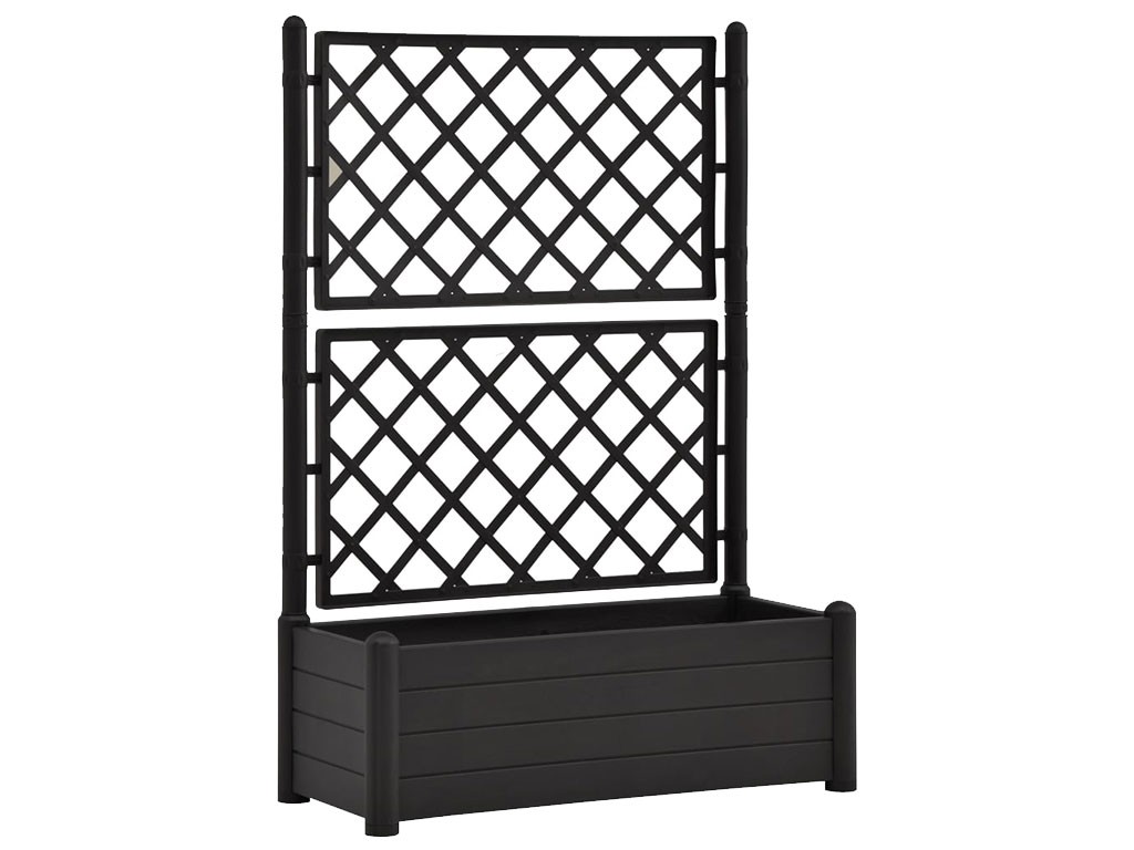 Doboz ráccsal, vízelvezető aljjal, kültéri használatra, polipropilénből, antracit színű, 80 literes űrtartalommal, méretek 100x43x142cm.