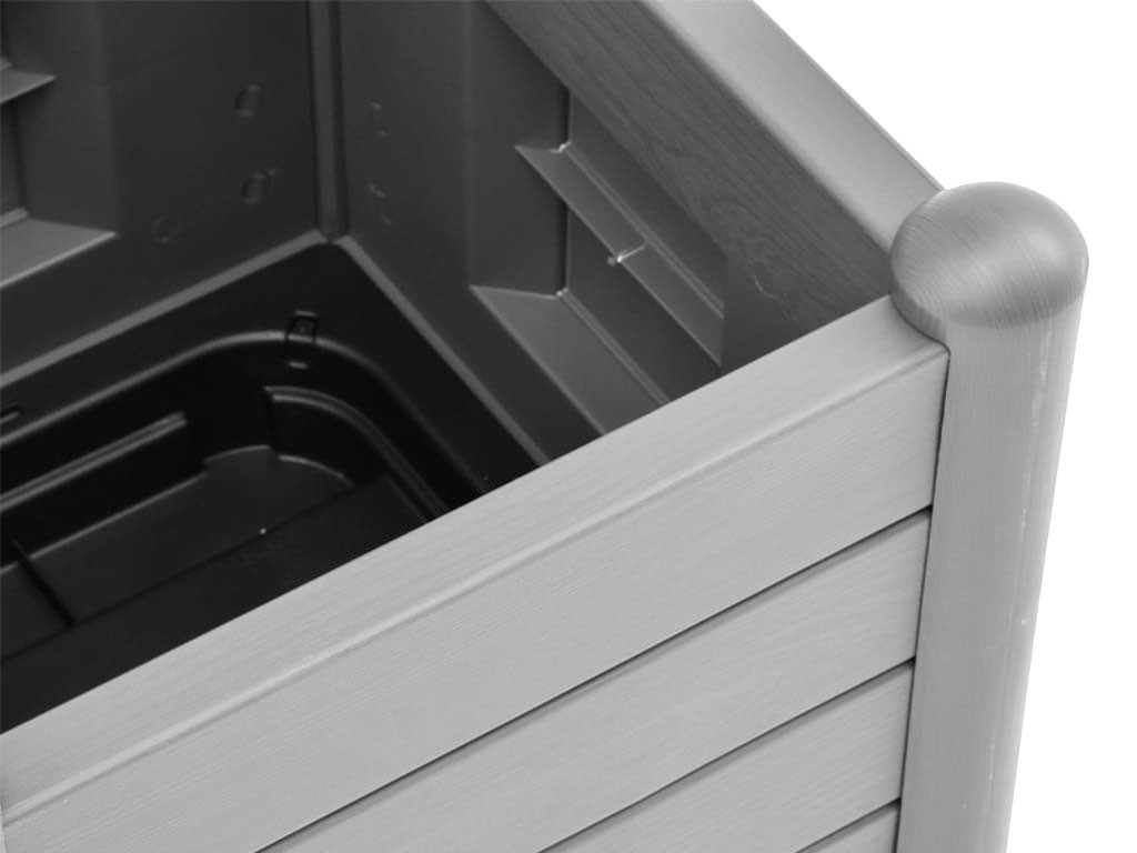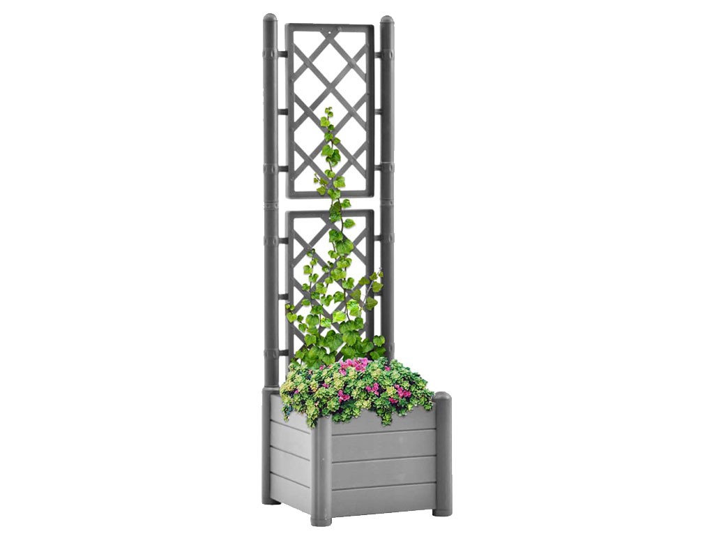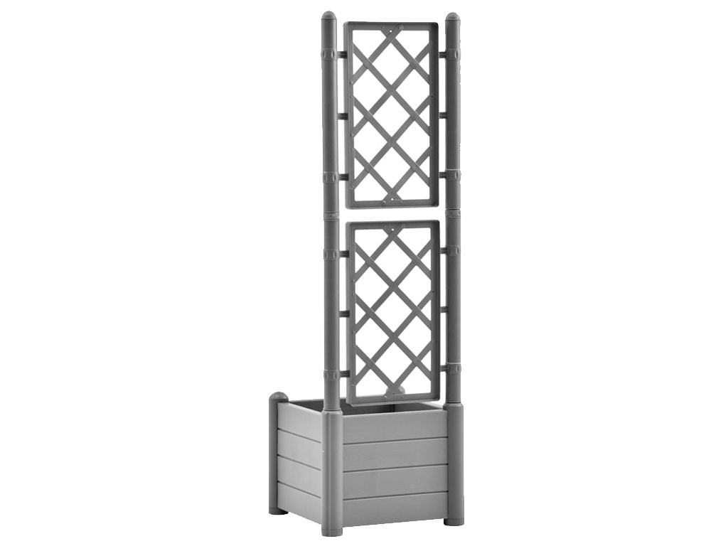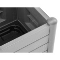 Rácsos doboz, vízelvezető aljjal, kültéri használatra, polipropilénből készült, szürke színű, 30 literes űrtartalommal, méretek 43x43x142cm.