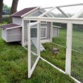 A tyúkól nagy, 34 x 68 cm-es (hosszúság x magasság) ajtóval rendelkezik. Egyébként a kifutó napellenzővel is fel van szerelve. Könnyen felszerelhető vagy levehető, ha szükséges.