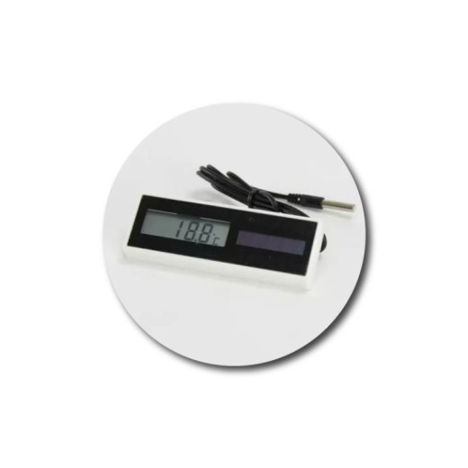 Ez a digitális hőmérő napelemmel működik , és nem igényel elemeket , így nagyon praktikus választás. Körülbelül 1 m hosszú kábelével ideális baromfiólakba, ketrecekbe és más olyan területekre, ahol a hőmérsékletet ellenőrizni kell. Ez a hőmérő nem alkalmas keltetőkben való használatra.