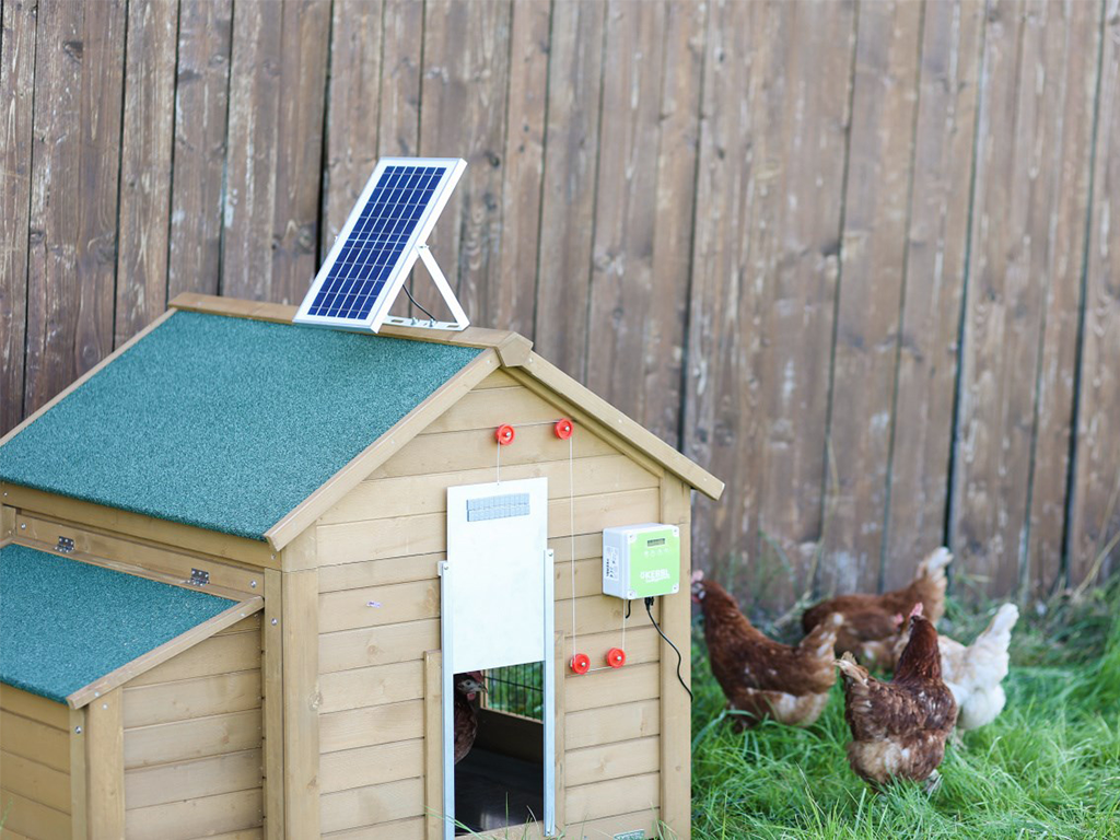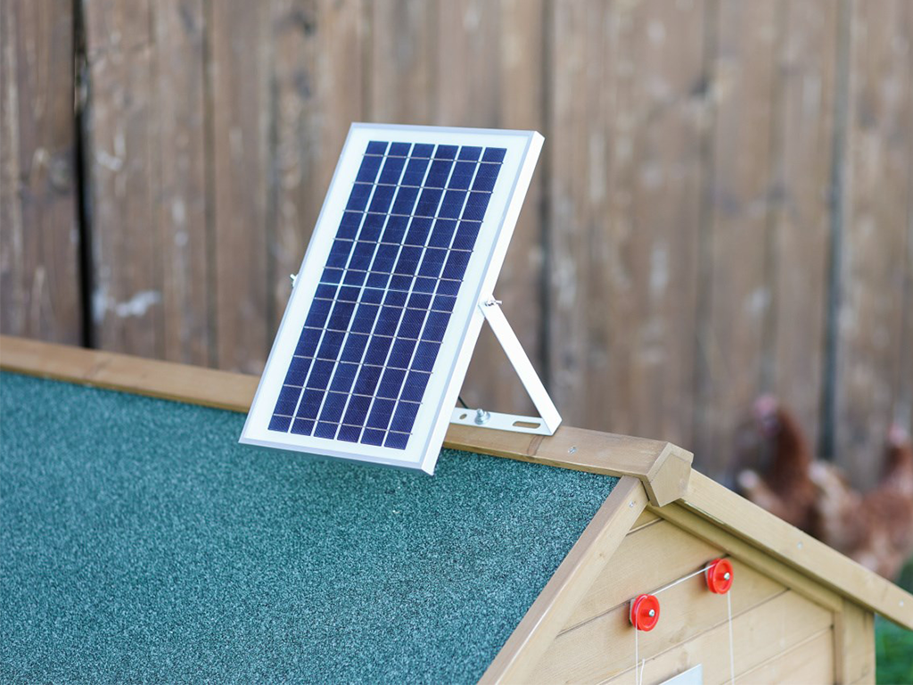 Napelemes készlet a KERBL 70556 csirkeól automatikus nyitásának és zárásának működtetéséhez, 10W