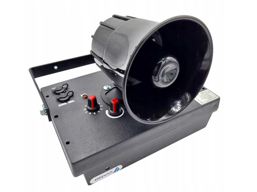 Hangos madárriasztó , újratölthető Li-Ion 8000 mAh akkumulátor, akkumulátor töltése 12 V-os napelemmel , 12 V-os adapter a további töltéshez, seregélyek, verebek stb. riasztására alkalmas, IP54 védelem - vízálló, porálló, kültéri területekre, gyümölcsösökbe, szőlőültetvényekre, 1 membrános hangszóró, akár 4000 m2 hatótávolsággal, 38 másodperces hangjel hossza, állítható hangerő, állítható riasztóintervallumok, PIR mozgásradarral, akár 10 m-es mozgásérzékelés, radarérzékelési szög 310°, alkonyszenzor, alacsony fogyasztás 20 mA, készenléti fogyasztás 5 mA, védett kapcsolókkal, csavaros rögzítéshez konzolon keresztül, méretek 225x160 mm.