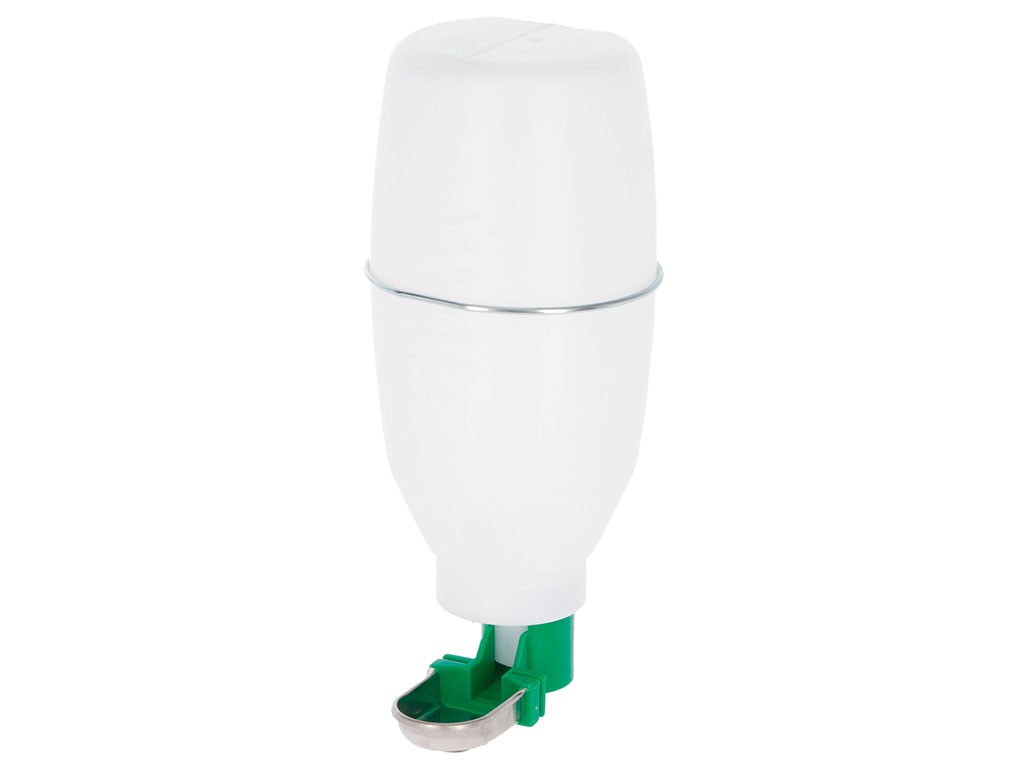 Nyúli itató , könnyen felakasztható , rozsdamentes acél itatóval, átlátszó műanyag tartállyal, űrtartalom 2 l, itató méretei 5,5x4 cm, itató magassága 27 cm, itató átmérője 12 cm.