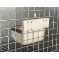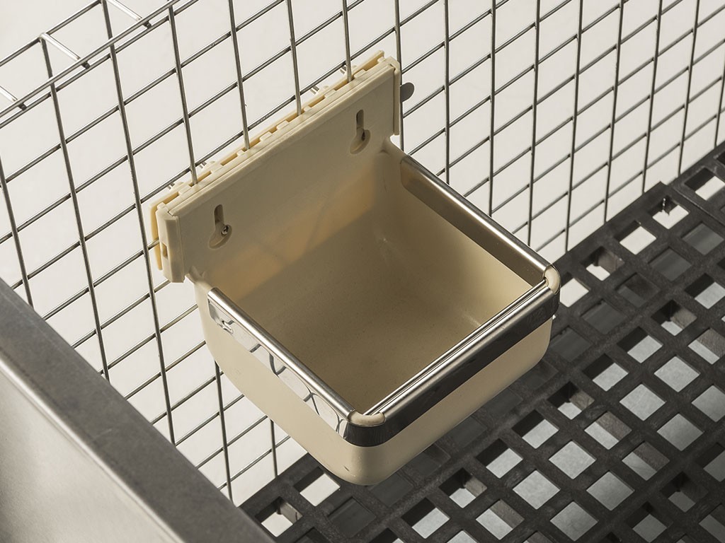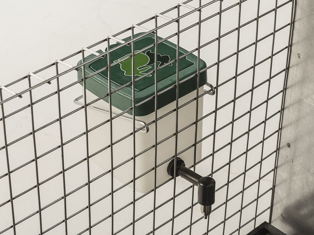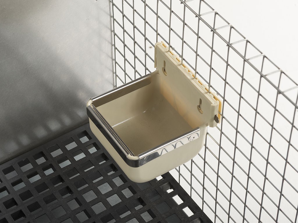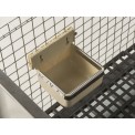 Horganyzott nyulakettrekesz, műanyag ráccsal a padlón, kihúzható alomdobozzal, itatóval és etetővel, méretek 86x53x63cm.