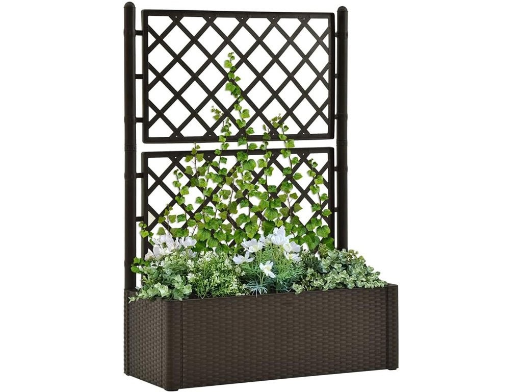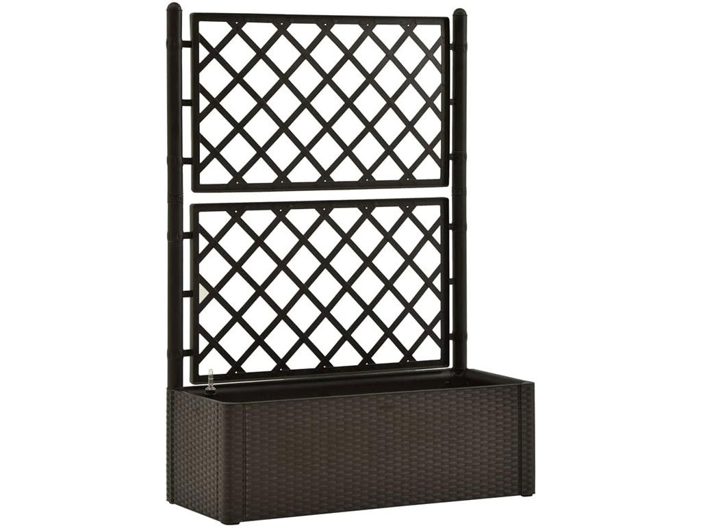 Öntöződoboz ráccsal, beltéri és kültéri használatra, vízszintjelzővel , polipropilénből, mokka színű, 90 literes űrtartalommal, méretek 100x43x142cm.
