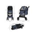 Ezt a kényelmes kutyababakocsit használhatod sétákhoz a városban vagy a parkban. A kellemes utazást a dupla forgó első kerekek és a dupla fix hátsó kerekek biztosítják, amelyek két fékkel rögzíthetők.