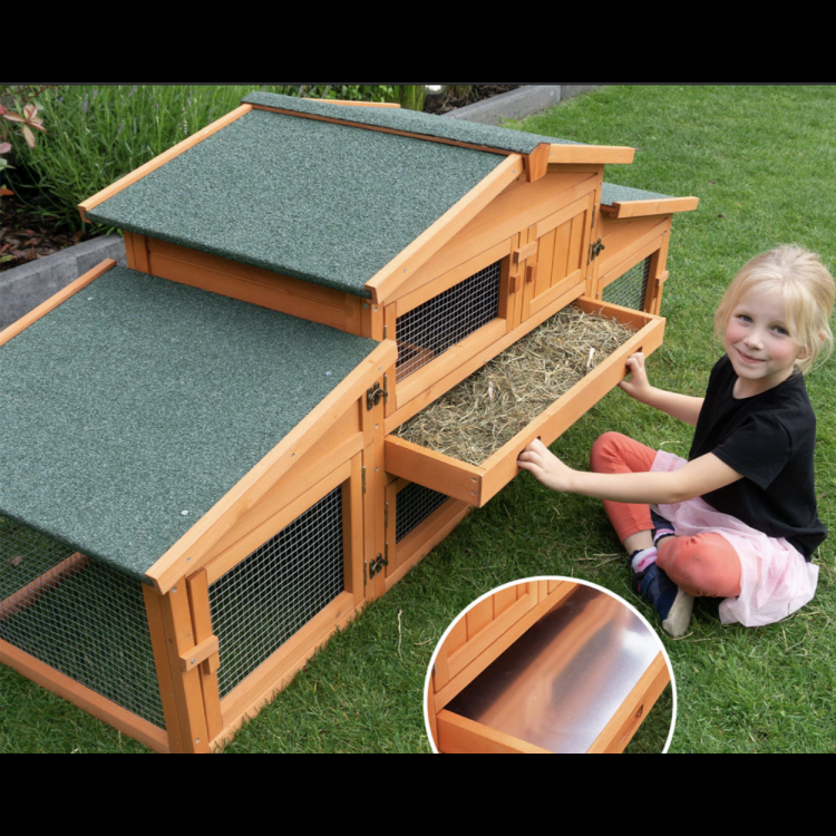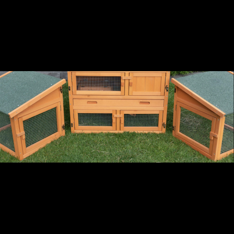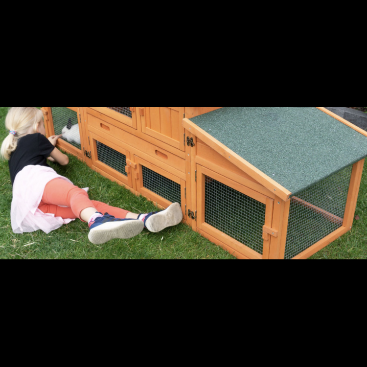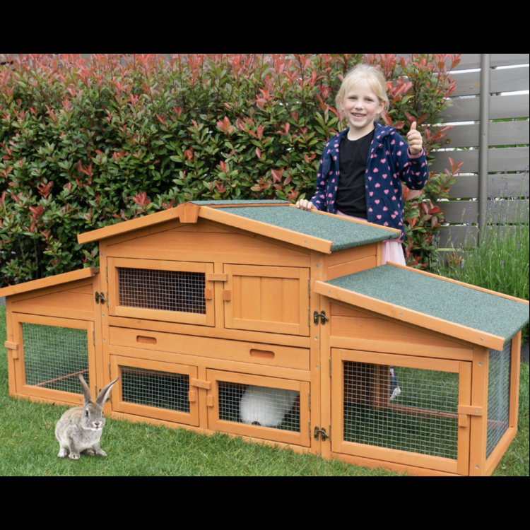 A PRACHATICE nyúlketrec egy luxus, kétszintes lakhely nyulak, tengerimalacok vagy hörcsögök számára. Két részből áll - egy házból és két oldalsó kifutóból. Kedvenced imádni fogja ezt a nyúlketrecet. Az összeszerelés nagyon egyszerű a mellékelt képes útmutatónak köszönhetően, mindenki meg tudja csinálni.