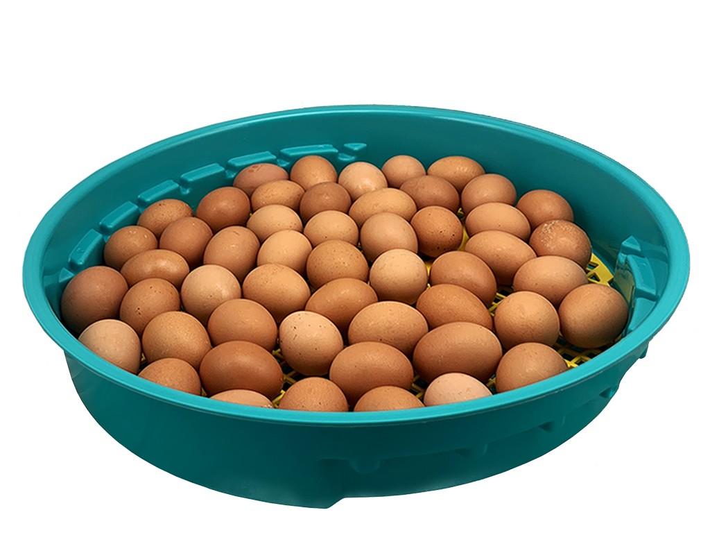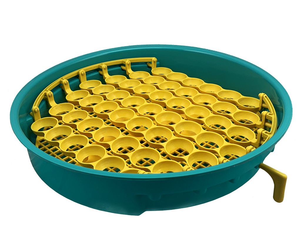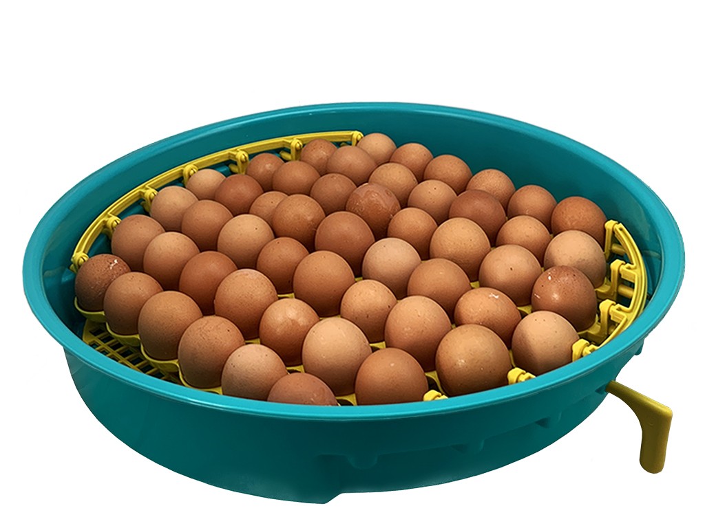 Az inkubátor félautomata tojásforgatási lehetőséget kínál egy kar segítségével , amely a kéz mozgatásával a forgó rácsba helyezett tojásokat az Ön képességei szerint forgatja, ideális esetben rendszeres időközönként - legalább reggel és este. A forgó rács csirke-, kacsa- vagy fácántojás méretéhez megfelelő présekkel van felszerelve . Ahhoz, hogy a fürjtojások keltetése során is használhassa a félautomata forgatást, PUISOR 1.0.ALP préseket kell vásárolnia . Szükség esetén (például olyan libatojásoknál, amelyek nem férnek el a forgó rács préseinek méretében), a tojások manuális (kézzel) forgatása is lehetséges az inkubátorban a kar meghúzásával, a forgó rácsok inkubátorból való eltávolításával és a tojások közvetlenül a rácsra - a keltetés alapjára - helyezésével . Ezt a rácsot jellemzően csak a keltetés utolsó 2-3 napjában használják , amikor a tojásokat kiveszik a forgó rácsokból, és erre a rácsra helyezik, ahol már nem forgatják őket, hogy az embrió megtalálja a legmegfelelőbb utat a héjból, és sikeresen csibévé keljen.