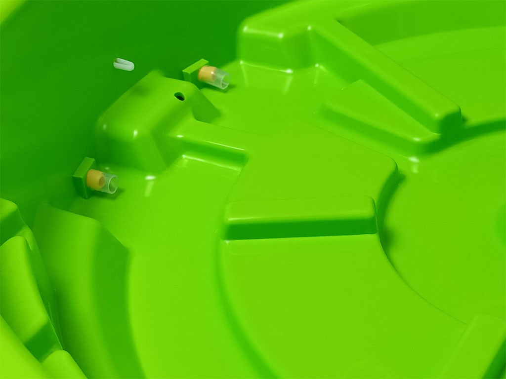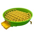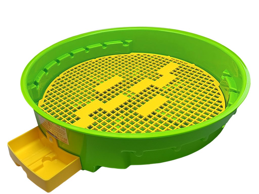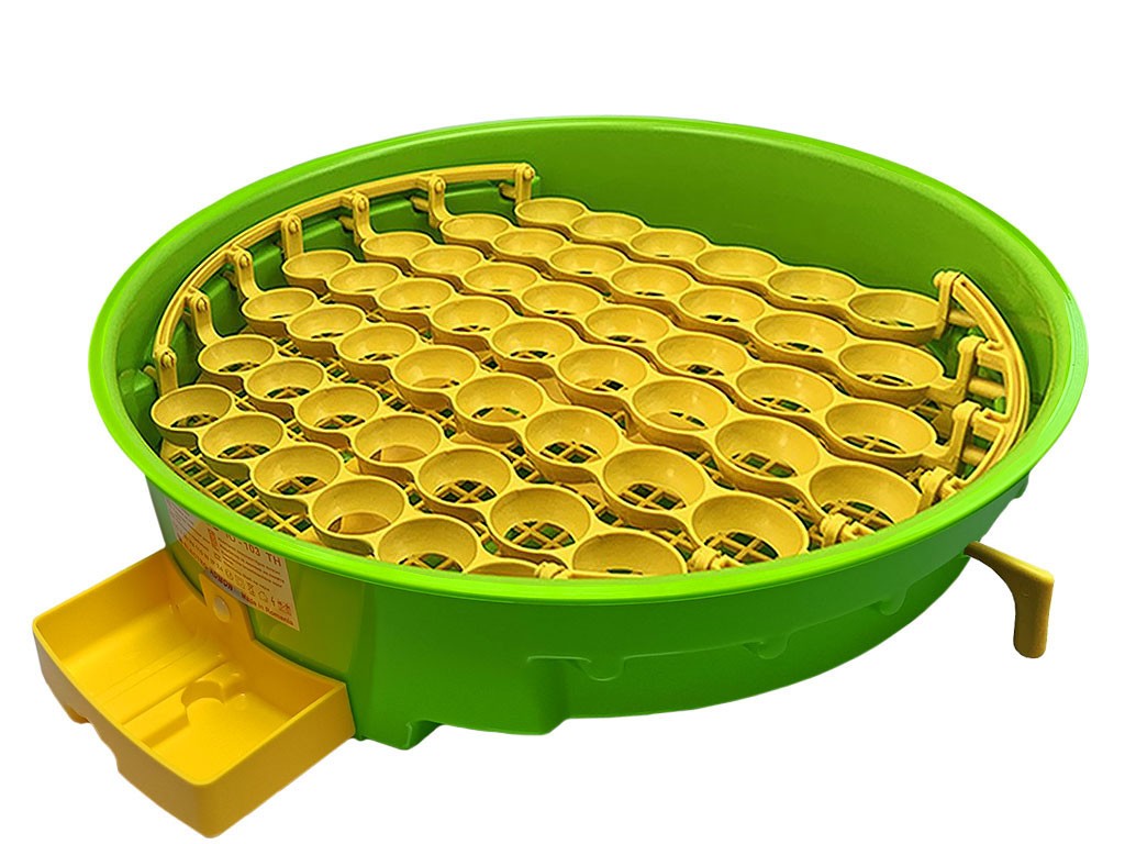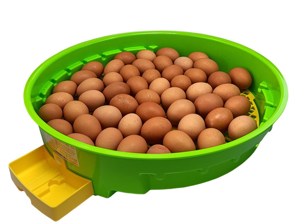 Az inkubátor félautomata tojásforgatási lehetőséget kínál egy kar segítségével , amely a kéz mozgatásával a forgó rácsba helyezett tojásokat az Ön képességei szerint forgatja, ideális esetben rendszeres időközönként - legalább reggel és este. A forgó rács csirke-, kacsa- vagy fácántojás méretéhez megfelelő présekkel van felszerelve . Ahhoz, hogy a fürjtojások keltetése során is használhassa a félautomata forgatást, PUISOR 1.0.ALP préseket kell vásárolnia . Szükség esetén (például olyan libatojásoknál, amelyek nem férnek el a forgó rács préseinek méretében), a tojások manuális (kézzel) forgatása is lehetséges az inkubátorban a kar meghúzásával, a forgó rácsok inkubátorból való eltávolításával és a tojások közvetlenül a rácsra - a keltetés alapjára - helyezésével . Ezt a rácsot jellemzően csak a keltetés utolsó 2-3 napjában használják , amikor a tojásokat kiveszik a forgó rácsokból, és erre a rácsra helyezik, ahol már nem forgatják őket, hogy az embrió megtalálja a legmegfelelőbb utat a héjból, és sikeresen csibévé keljen.