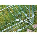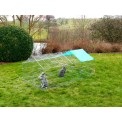Kifutó nyulak, tengerimalacok és más rágcsálók számára , méretei 180 x 90 x 75 cm . Ez egy tágas kifutó nyulak számára , amely alsó szélein szökésgátlóval, tetején pedig nap elleni védelemmel van ellátva. A kifutó könnyen összecsukható , horganyzott fémből készült .