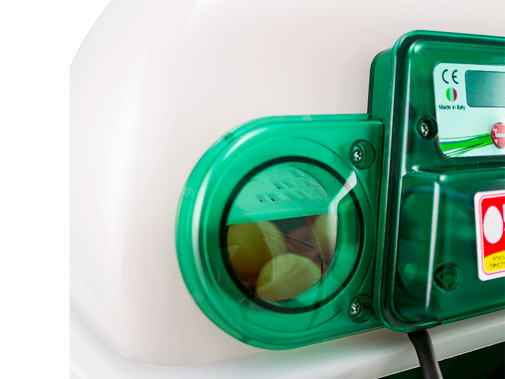 Kapacitás forgó ráccsal: 12 csirke-, 48 fürj-, 12 liba-, 12 kacsa- vagy 12 fácántojás.
