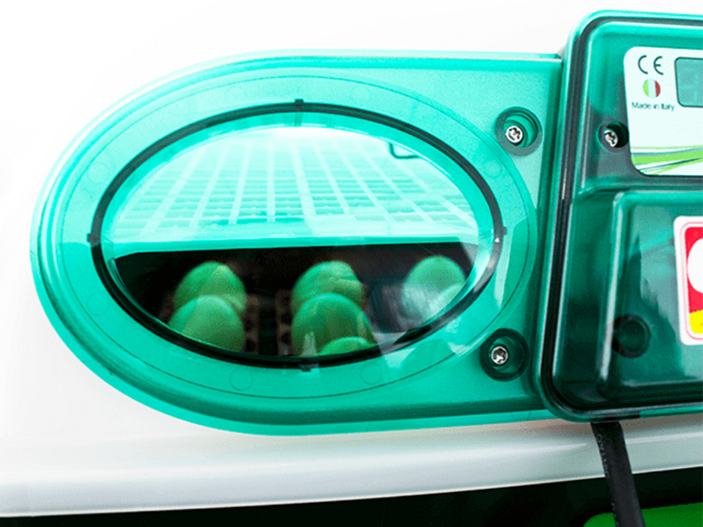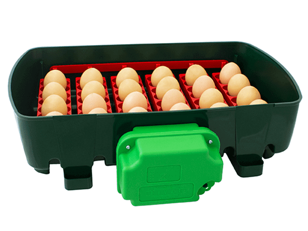 Kapacitás forgó ráccsal: 24 csirke-, 96 fürj-, 24 liba-, 24 kacsa- vagy 24 fácántojás.