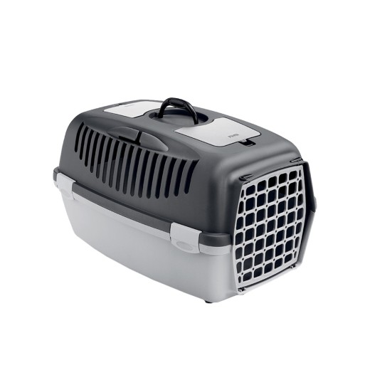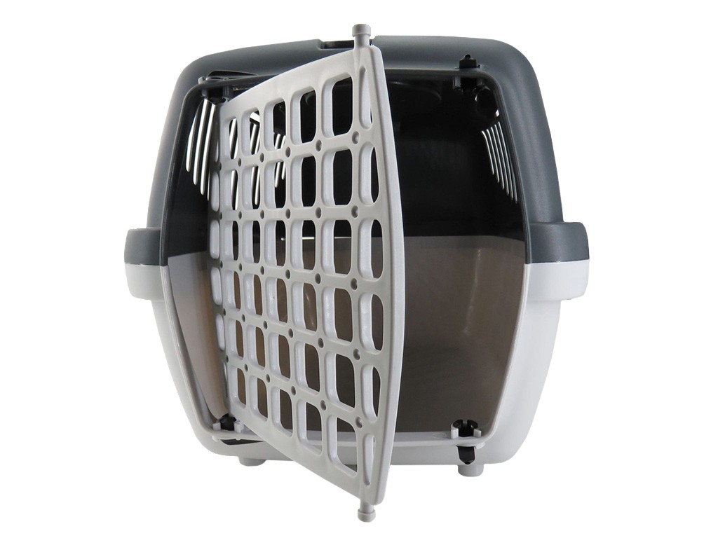 10-12 kg-os kutyák és macskák számára, a fedél és a kád klipszekkel van összekötve, az elülső ajtó 4 zárral rendelkezik, az ajtó állítható jobbra vagy balra nyílhat , a könnyű hordozáshoz fogantyúval rendelkezik , a tárolódoboz a kennel tetején található, a kennel tetején zárható kezelőnyílás található , két autós biztonsági öv tartóval, belső méretek 58,5x36,5x33,5 cm, külső méretek 61x40x38 cm.