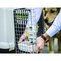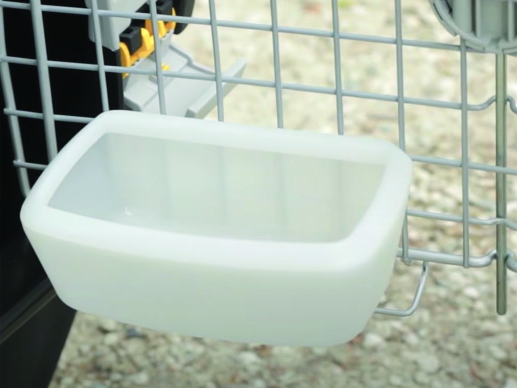 A doboz speciális vízelvezető párnával van felszerelve, amely a folyadékokat a doboz aljára vezeti, így kutyája mindig száraz környezetben lesz. A szállítódobozhoz egy praktikus tál is tartozik, amelynek speciálisan ívelt szélei megakadályozzák a víz kiömlését szállítás közben. Az 500 ml-es tál elegendő vizet biztosít négylábú barátja számára. Ha nem használja a tálat, a doboz tetején található beépített rekeszekben tárolhatja . Két zárható rekesz használható a szállítódoboz tartozékainak , kekszek és kutyatáp tárolására.