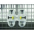 A szállítódoboz kiváló minőségű műanyagból készült, amely tartós és erős . A doboz számos biztonsági funkcióval van felszerelve, amelyeket értékelni fogsz. A doboz két részből áll, az aljából és a fedélből, amelyek nyolc biztonsági zárral ellátott kapocs segítségével vannak egymáshoz rögzítve, és a doboz minden sarkánál négy csavarral rögzíthetők a doboz még nagyobb stabilitása érdekében. A doboz dupla fémajtói mindegyike saját biztonsági zárral rendelkezik, amelynek köszönhetően az ajtók szállítás közben nem nyílnak ki. Az ajtón lévő rács és a doboz fedelének hátulján és oldalán található nagyszámú lyuk biztosítja a megfelelő légáramlást. A doboz oldalán lyukak is találhatók a további rögzítéshez az autóban.