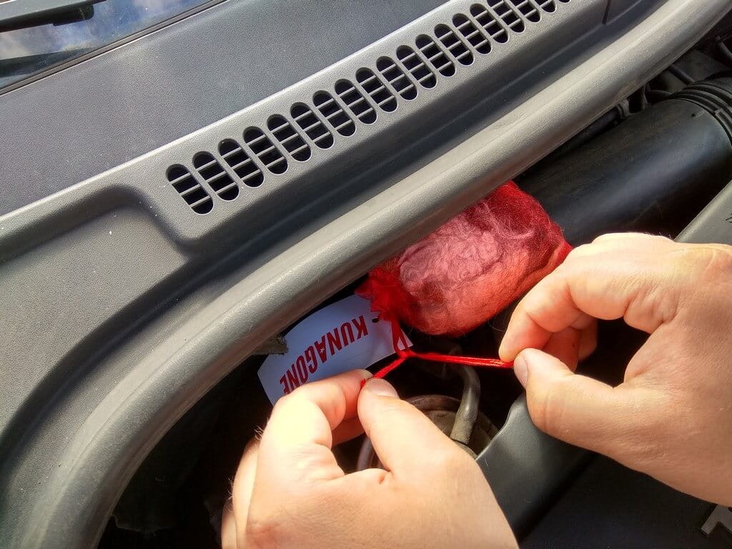 - Vigyen fel 1-2 zacskót az autó motorházteteje alá