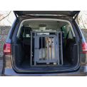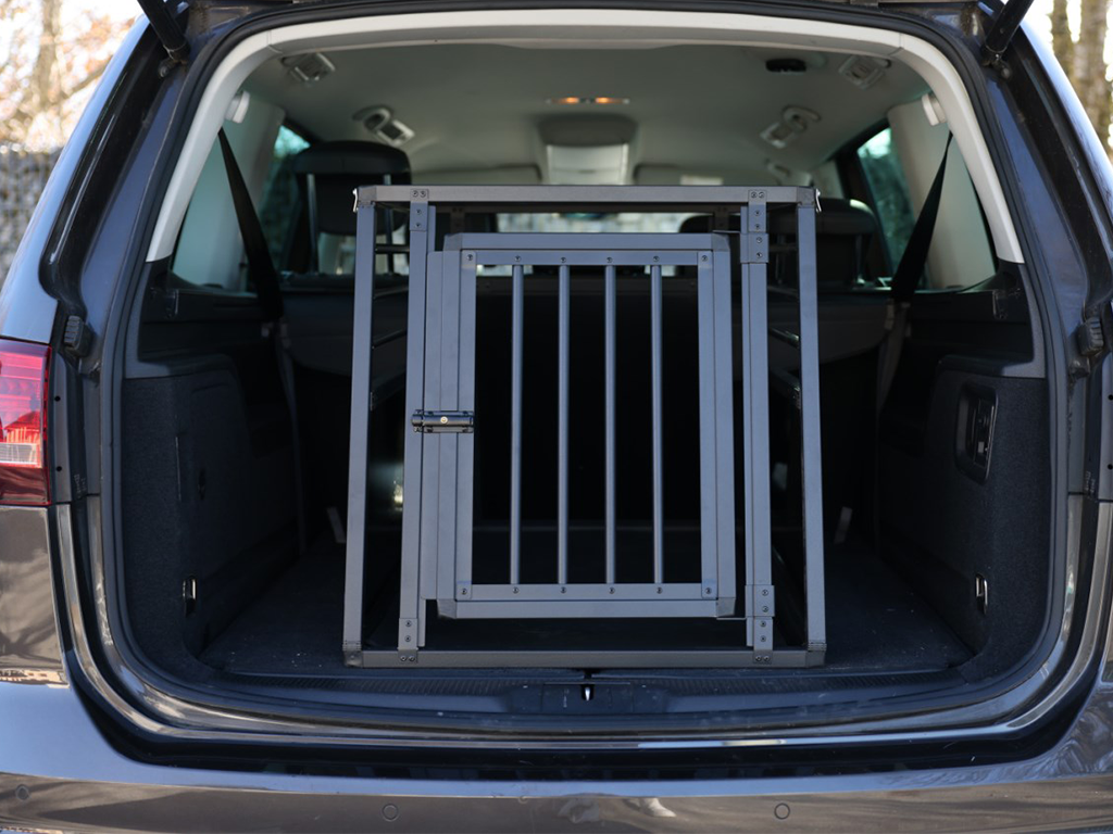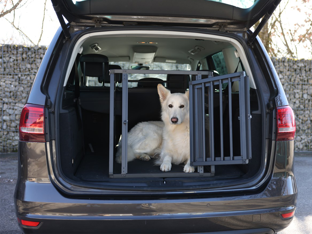 A szállítódoboz kutyák számára készült, autó csomagtartójában. A szállítódoboz méretei 77x55x50 cm. Kedvencednek elegendő biztonsággal és hellyel kell rendelkeznie ahhoz, hogy kényelmesen felállhasson és megfordulhasson a hordozóban.