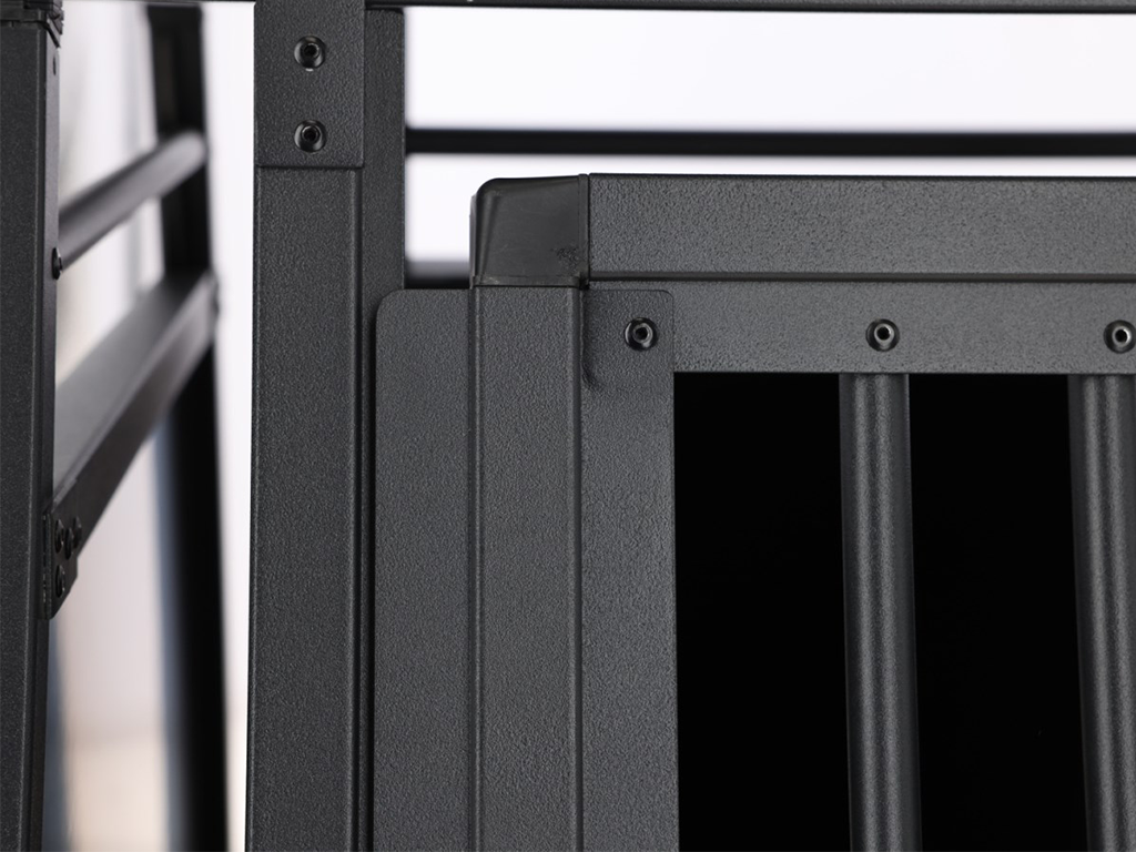Kutyaszállító ketrec, erős és biztonságos alumínium autós doboz, gyorszáras ajtó, jó légáramlás és kilátás, csúszásmentes, fűthető gumiszőnyeg az optimális ülésért, egyszerű karbantartás és összeszerelés, méretek 77x55x50cm.