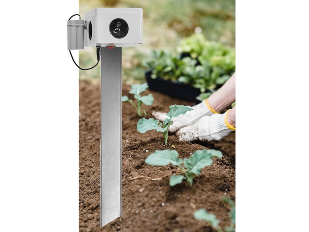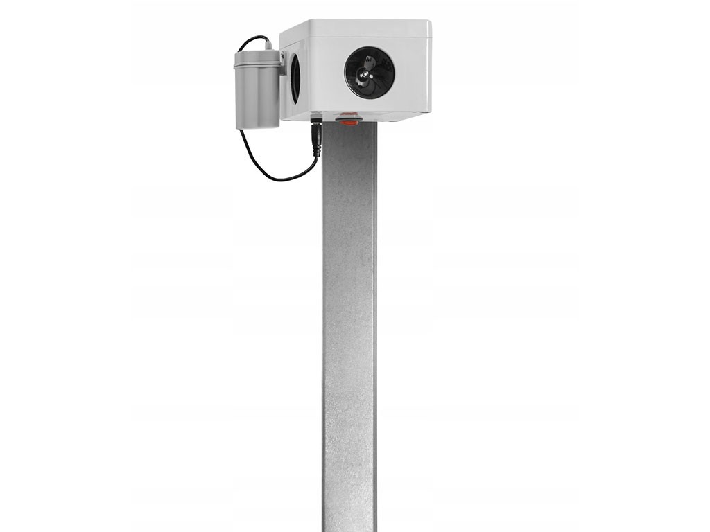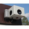 Térbeli ultrahangos vadriasztó , biztonságos ember és háziállatok számára, nyestek és rágcsálók elriasztására alkalmas, beltéren és kültéren, tartós vízálló borítással, mágneses tartóval rögzíthető, akár 270° -os hangtartományú , automatikus frekvenciaváltással, akár 2500 m2-es hatótávolsággal , 4 db AA elemmel működik, 3 db 40 mm-es membrános hangszóróval, 85x85x55 mm méretekkel.