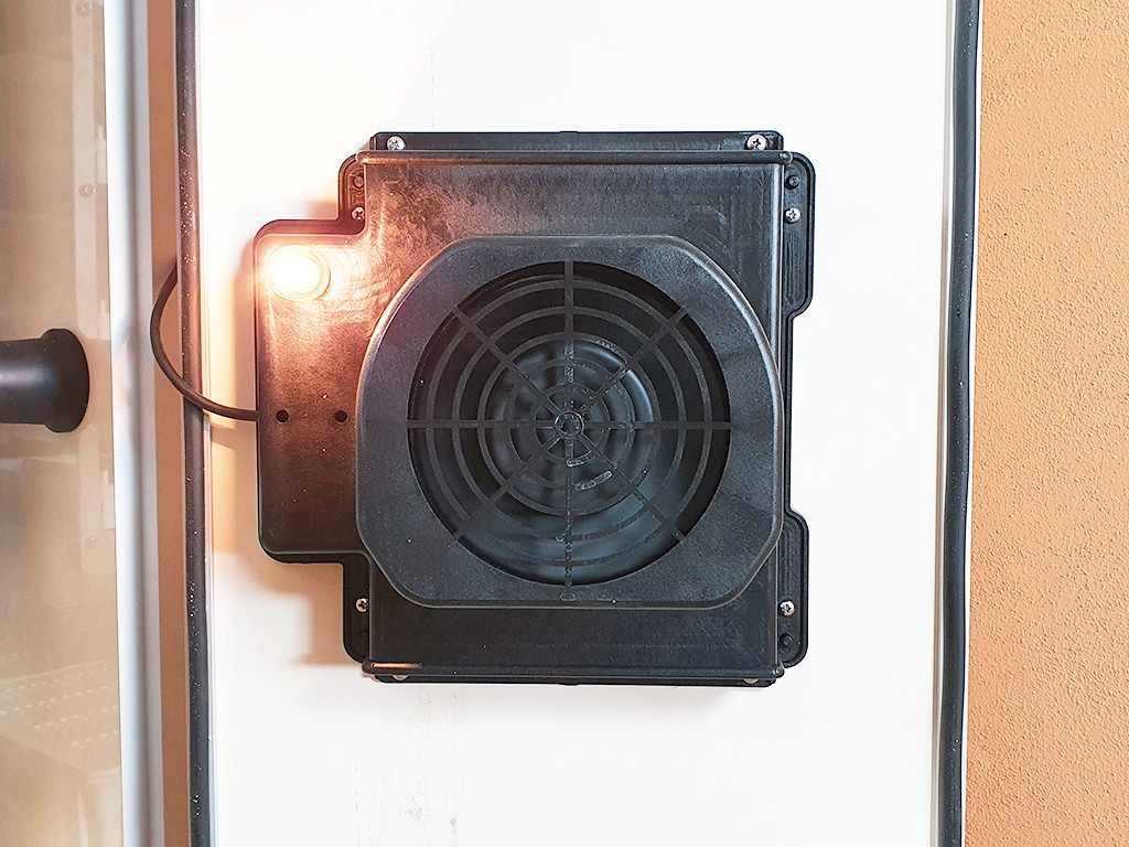 Baromfiak esetében, ahol a kelés során a tojásokat le kell hűteni, majd harmatmentesíteni kell , használható az aktív periodikus hűtési funkció , amely a beállításoknak megfelelően rendszeres időközönként automatikusan alacsony értékre csökkenti a hőmérsékletet és a páratartalmat , ezáltal lehűti a tojásokat és szimulálja a baromfi viselkedését, amely a kelés során egy bizonyos időre elhagyja a fészket igyon és ehessen. A hűtési fázis végén a keltető automatikusan növeli a páratartalmat, szimulálva a tojások harmatmentesítését , ami a természetben történik, amikor a baromfi nedves lesz a kelési szünetben, majd nedvesen visszaül a tojásokra.