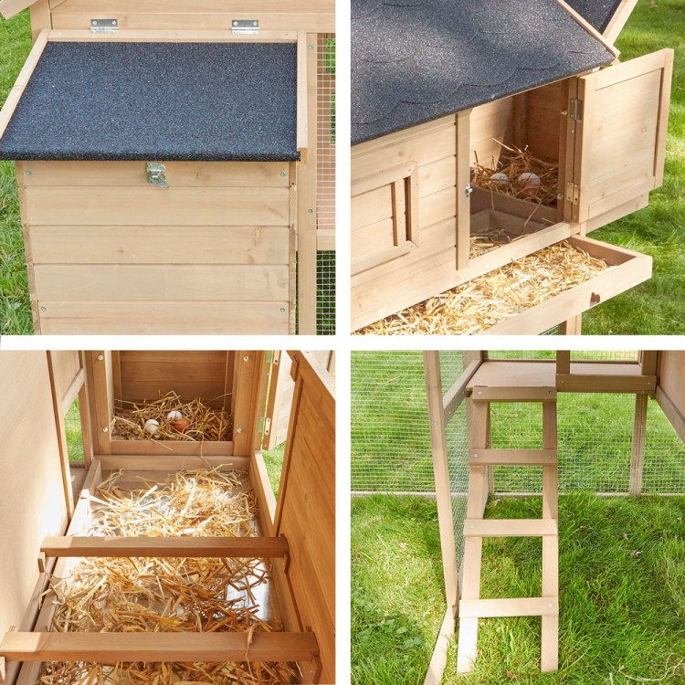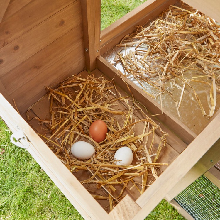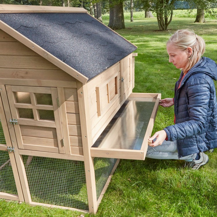 A tyúkól fiókkal van felszerelve, hogy az ürülék könnyen kiüríthető legyen.