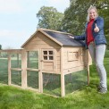 Maxi tyúkól, igazán nagy kifutóval, akár 8 tyúk számára (méretüktől függően), dupla fészekkel . A nappali egy nagy kifutóhoz csatlakozik. A tartós tömörfa szerkezet garantálja a tyúkok nagy kényelmét az ólban. Az ól nagyon tágas. Az összeszerelés nagyon egyszerű az illusztrált utasítások alapján, és bárki meg tudja csinálni.