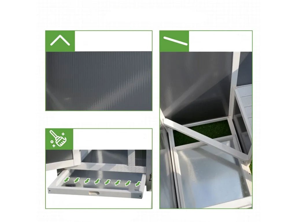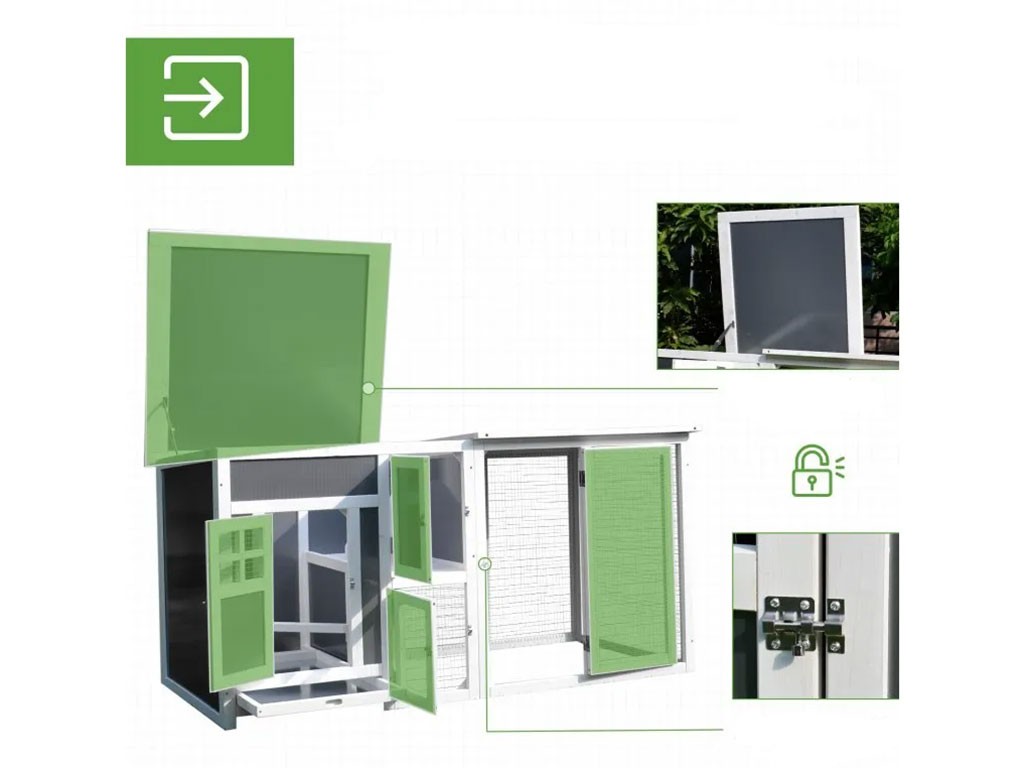 Egy fenyőfából készült tyúkól gyakorlatilag semmilyen karbantartást nem igényel . A hosszabb élettartam érdekében a védőbevonatot, mint minden fa esetében, meg kell újítani. Az ajtónak köszönhetően azonban a tyúkól pillanatok alatt kitisztítható . Kihúzható trágyatartóval is rendelkezik, amelyet egyszerűen kihúzhat és kitisztíthat.