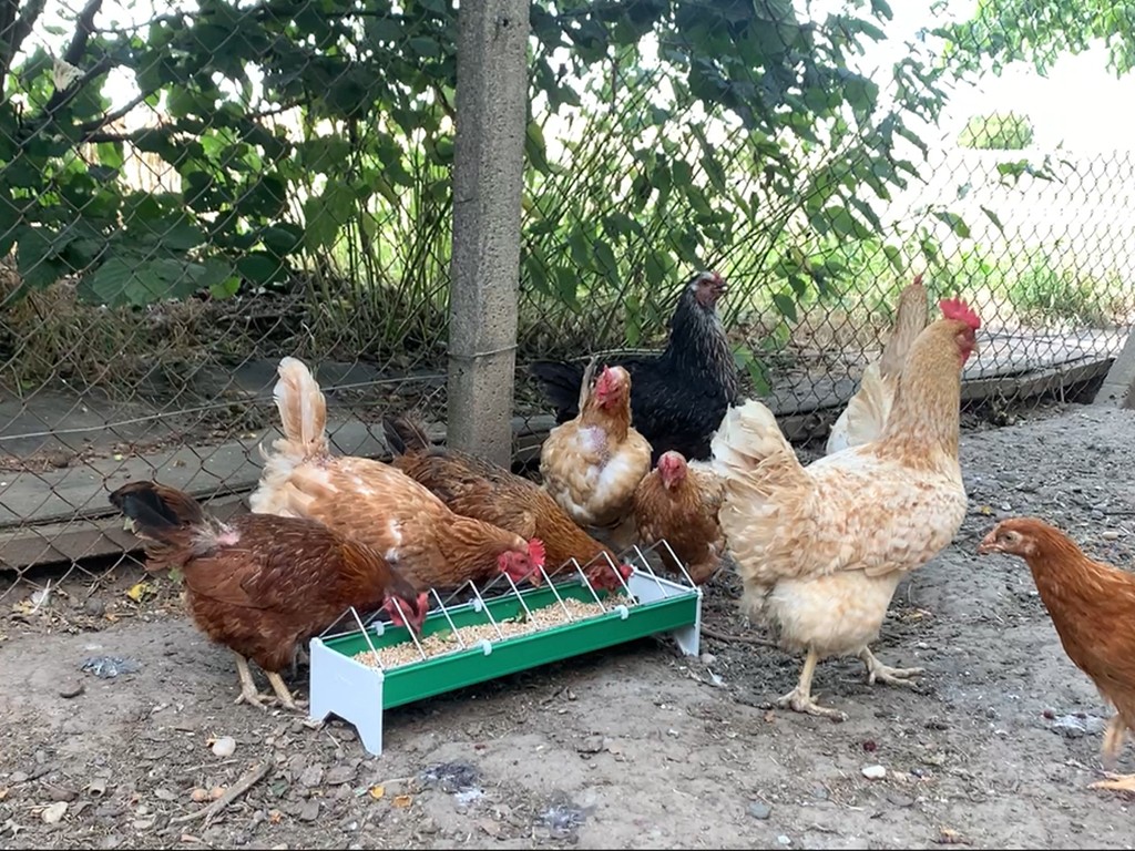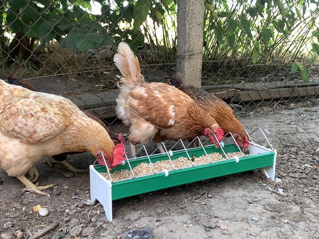 Vályús etető tyúkoknak, baromfinak CF033.10P - 13x50cm, széles lyukakkal, műanyag