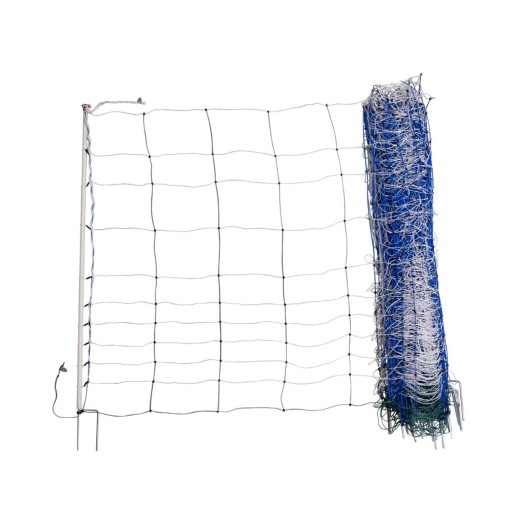 A vezetőképes kerítésháló rendkívül fejlett megoldást kínál a kifutók rugalmas és megbízható védelmére . A szabványnál nagyobb, 145 cm-es magasságának, masszív szerkezetének és kiváló minőségű anyagainak köszönhetően különféle tenyésztési állatok számára alkalmas – a kisebb lovaktól a szamarakig és az alpakákig. Az extra robusztus, dupla horganyzott tüskékkel ellátott oszlopok stabilitást biztosítanak még egyenetlen terepen is, míg a réz- és rozsdamentes acélhuzalok kombinációjával készült, nagyon alacsony ellenállású vezetőképes rendszer lehetővé teszi az elektromos impulzusok hatékony és egyenletes eloszlását a háló teljes hosszában. Ezek a kivételesen magas hálók ideálisak mobil éjszakai karámok felállításához is, mind az állatok ellenőrzött éjszakai tartózkodásához , mind a ragadozók elleni megelőzésként. A háló könnyen telepíthető és néhány perc alatt áthelyezhető, amit különösen a legelők váltásakor fog értékelni. A látható kékesfehér szín , az erős hegesztett kötések és a kiváló minőségű vezetőképes anyagok hozzájárulnak a hosszú távú és biztonságos működéshez. A bonyolult összeszerelés hiánya és a nagyfokú felhasználási variáció révén ez a háló praktikus választás mindazok számára, akik tartós és funkcionális megoldást keresnek az állatok védelmére a terepen. A háló könnyen csatlakoztatható elektromos forráshoz , így teljes értékű villanypásztort hozhat létre.