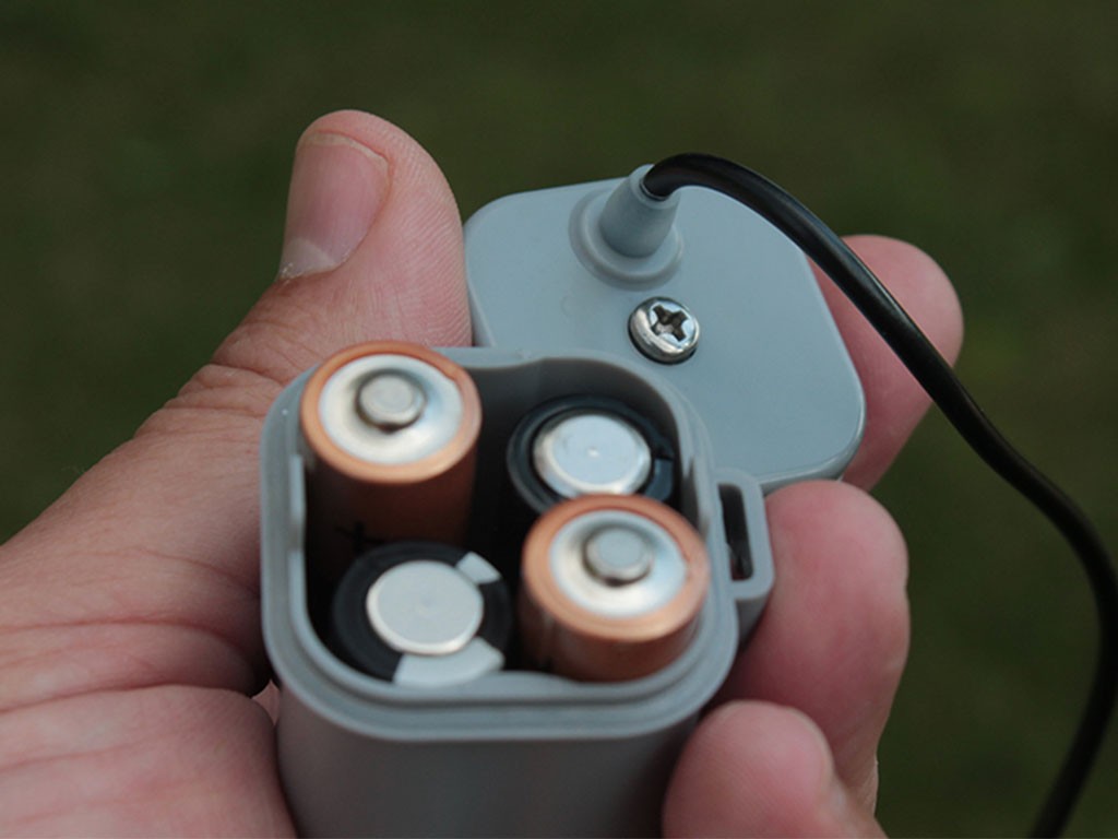 A készülék 4 db AA elemmel működik (nem tartozék). A készülék oldalán egy praktikus kapcsolóval van felszerelve , amellyel igényei szerint szabályozhatja a működését . Alkáli elemek használatát javasoljuk, amelyek folyamatos működés esetén legalább 6 hétig bírják.