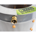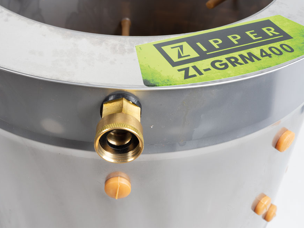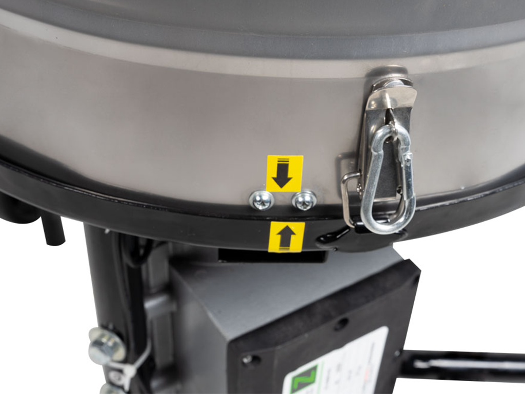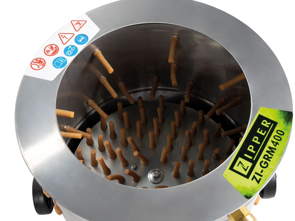 Ennek a rozsdamentes acél tollal dolgozó gépnek a felső széle alatt egy öblítőgyűrű található. Ezáltal a tollal dolgozó gép még könnyebben használható, és nem kell a tollak öblítése közben a tollaknál állni. Ezután más tevékenységeket végezhet, vagy előkészíthet egy másik madarat a szedésre, miközben a tollak öblítőrendszere elvégzi a munkát Ön helyett. A szedés közbeni öblítés nemcsak a szennyeződéseket távolítja el a szedett madárról, hanem hatékonyabbá teszi a szedési folyamatot, megakadályozza a bőr kiszakadását , és megkönnyíti a nedves tollak szedését. Egyszerűen csatlakoztassa a tömlőt a tollak szelepéhez , nyissa ki a vizet, és már szedhet is.